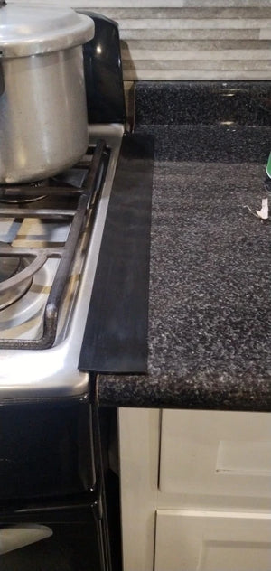 The flexible material fits most standard gaps and can be trimmed for a custom fit. It works around gas and electric stoves, creating a snug seal that keeps liquids and debris out.